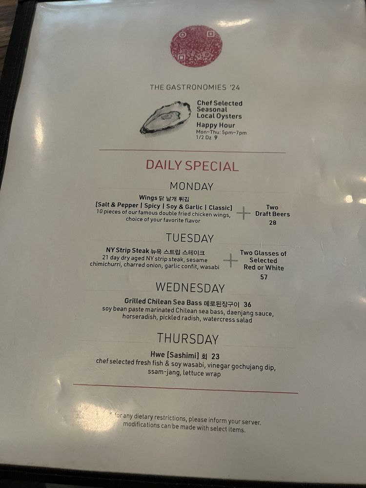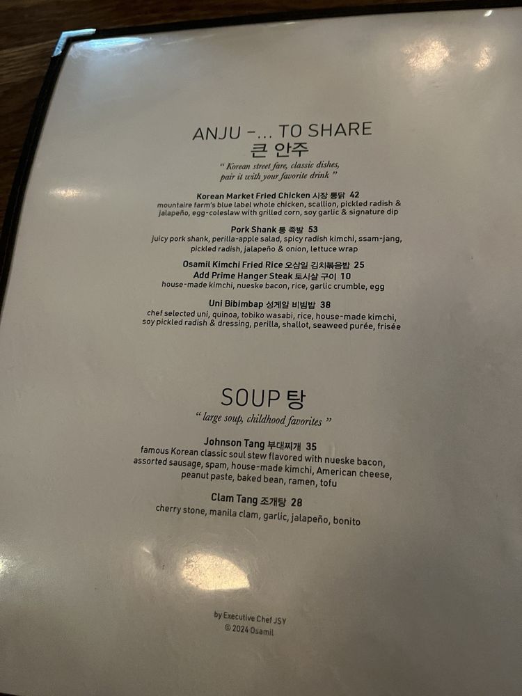 Osamil, a trendy Korean gastropub in New York City, offers a unique twist on traditional Korean dishes. With a menu focusing on tapas and small plates, Osamil provides a modern and hip dining experience. Hailey K. raved about the Gambas, Rose Seafood Tteokbokki, Chicken Skewer, Gochujang Pork Belly Skewer, and Bulgogi. Zack G. recommended the Stick With You cocktail and the pork shank. Koreen D. praised the Seafood Rose Tteokbokki and Kimchi Fried Rice with steak. Rebecca Q. enjoyed the Mushroom Japchae and Osamil Kimchi Fried Rice with hanger steak. Helene B. loved the scallop skewer, pork shank, and tokbokki. Catherine C. emphasized ordering the Kimchi dish. Alyssa Y. highlighted the Squid Fries, Oysters, Kimchi Fried Rice, Tteokbokki, and Pork Belly. Overall, Osamil provides a vibrant atmosphere, excellent service, and innovative, flavorful dishes that redefine Korean comfort food.